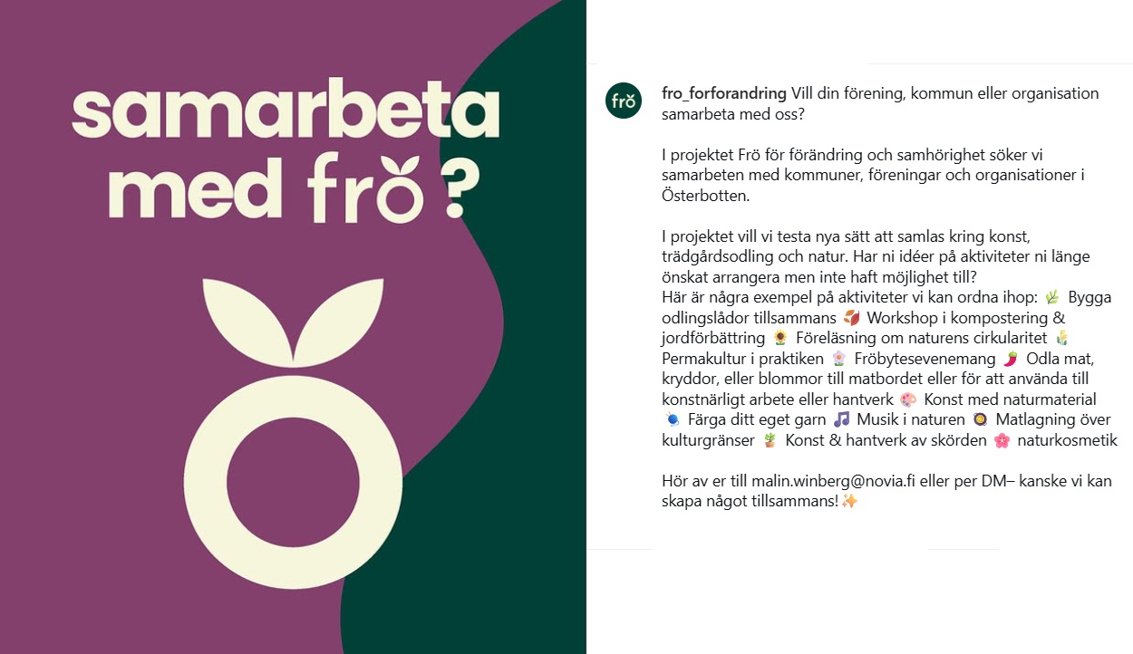 Frö för förändring och samhörighet är ett projekt som vill möta behovet av naturliga mötesplatser över kultur- och språkgränser i regionen.